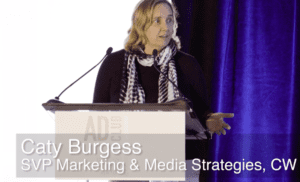The OOH:Now 2018 sessions are on Vimeo. Insider’s favorite is brand keynote address by Caty Burgess, SVP Marketing and Media Strategies, CW. Burgess gives a fast-paced, witty overview of how a television and programming network uses out of home. Many of the examples in Burgess’s talk feature ads on Ace Outdoor Advertising’s 8901 Sunset Blvd billboard (at right). Andy Bilanzich, you’ve got a terrific asset. Here are the highlights.