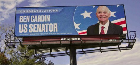 After congressional elections, OAAA congratulates winning candidates from both parties.  This example in Maryland features Senator Ben Cardin (D-MD):