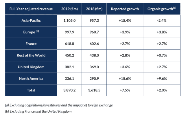 North America thriving. JCDecaux’s North American revenues were up in double digits during the fourth quarter 2019. The same trend was apparent for the full year (see below) A rising tide is lifting all out of homes boats in North America.