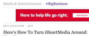 Insider agrees with Forbes Contributor Gene Ely in Here’s How to Turn iHeart Media Around :