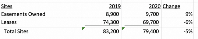 Lamar owns land under about 1 in every 8 sites that it operates. This is a smart long term strategy if you expect revenues to continue rising due to permit scarcity and digital conversions. The number of Lamar easements increased by nearly 10% during 2020. Looks for Lamar’s easements to keep growing.