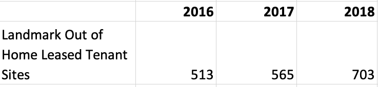The number of Landmark owned out of home sites grew 24% during 2018 as you can see from the following chart.