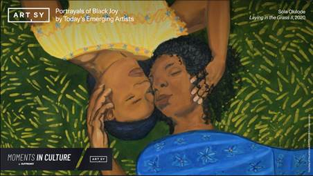 New York, NY, February 17, 2021 —Artsy, the largest online marketplace for discovering, buying and selling fine art by leading artists, and OUTFRONT Media, one of the largest out-of-home media companies in North America, is delighted to announce a new national activation, ‘Portrayals of Black Joy by Today’s Emerging Artists’.
