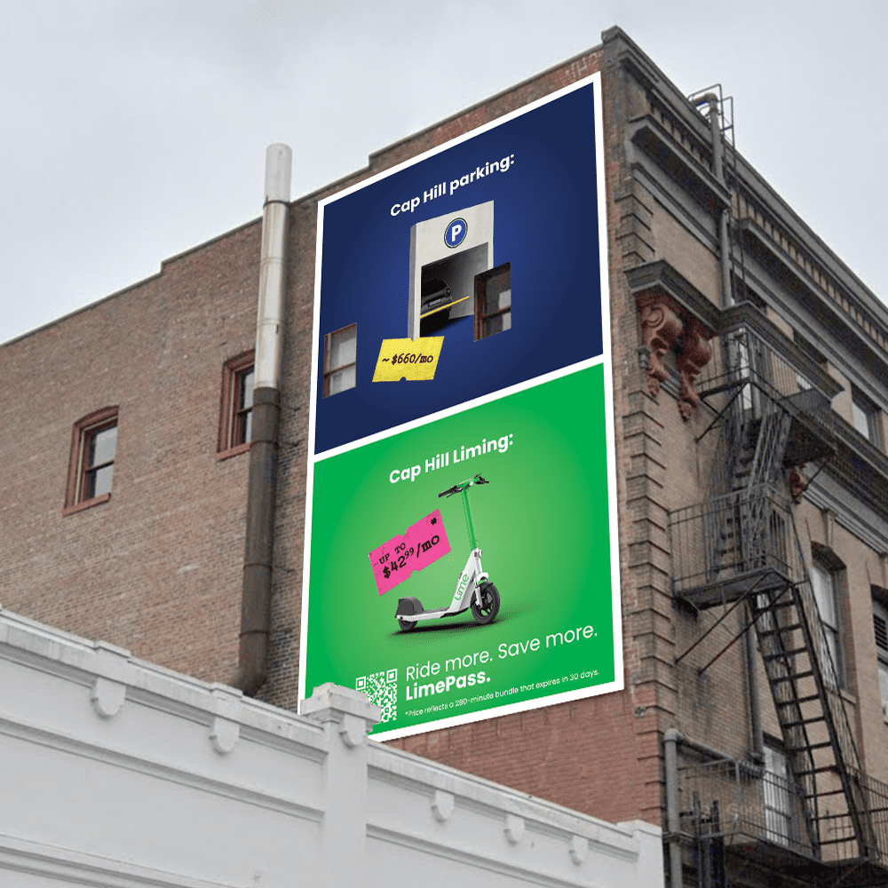 The endeavor spotlights the brand’s LimePass subscription, which offers discounted rates and unlimited free unlocks. The OOH creative was developed and produced in-house by Lime. It captures how the daily struggles and hefty prices that come with car ownership — such as insurance, gas, parking, maintenance, and repairs — can be solved with the benefits of LimePass.