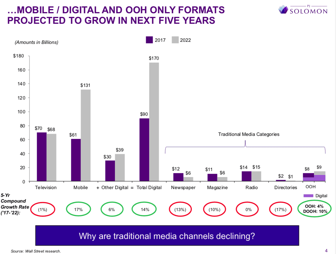 PJ Solomon investment banker Mark Boidman gave a fast-paced talk on the strengths and risks of out of home at the May 7-9 GO2018 conference. Here’s a summary.