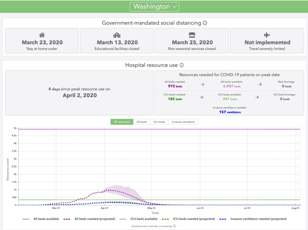 The Institute for Health Metrics and Evaluation at the University of Washington runs a projection for hospital resource use related to covid-19 by state and for the US. The White House refers to this forecast in its briefings. Look up the projection for your state to see if the worst is still to come or if you’re past the worst. Insider lives in Washington State which was an early hotspot but also an early social distancer. The state is 4 days past peak hospital resource use related to covid-19. Bet you haven’t seen that in the gloom and doom headlines. There is no shortage of hospital beds or ventilators. That’s why Washington sent 400 ventilators to the state of New York. Social distancing works.