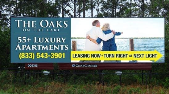 - This billboard for The Oaks does its job. It lets the target audience know they will see an apartment complex catering to seniors if they turn right at the next light.