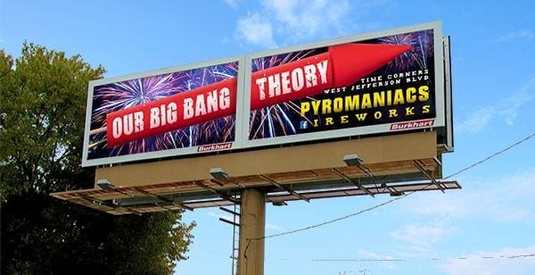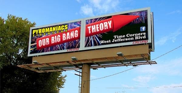 - This outdoor ad for a fireworks store does a good job of drawing attention and makes a clever play on words to ride the coattails of a popular sit-com.