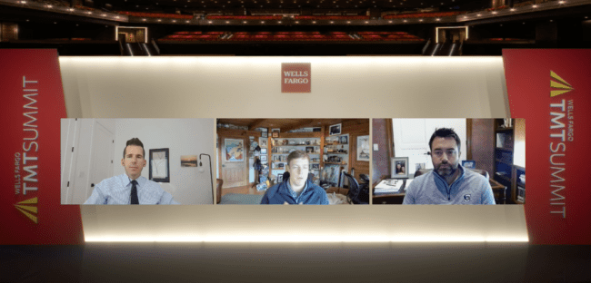 Alex Rozek (center) and Adam Peterson (right) appearing at the Wells Fargo TMT Summit