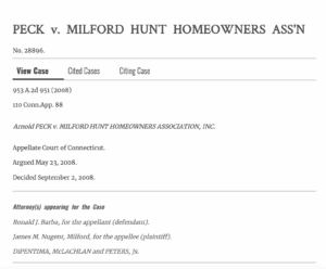 - In January 2005 the Milford Hunt board of directors adopted a resolution terminating the lease between T&M Homes and Arnold Peck. Peck filed an injunction seeking damages and a judgement confirming title to the lease. The Milford Hunt homeowners association petitioned the court to invalidate the lease based on state law language which gave unit owners the right to terminate a lease which is “unconscionable or commercially unreasonable to the unit owners at the time entered into under the circumstances prevailing”