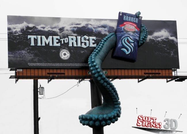 Soft Signs just completed a unique 3D billboard to promote the Seattle Kraken hockey team. Soft Sign’s Owner Eddy Carolan tells Billboard Insider that Billups created the campaign and it was executed on Lamar Advertising billboards. Here’s the sculpture phase…