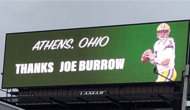 Burrow was a standout quarterback at Athens High School before playing at Ohio State and then moving onto LSU where he won a national championship. In Burrow’s 2019 Heisman acceptance speech, he mentioned food insecurity and hunger in his home area as issues of importance to him, prompting an outpouring of donations.