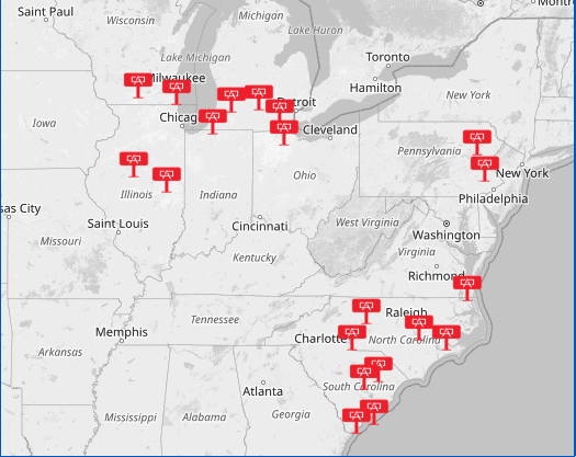 As we have recently documented, Adams Outdoor has been as aggressive as any OOH company in acquiring assets strategic to their areas of growth. We pulled a copy of their locations map to help visualize their 18 markets.