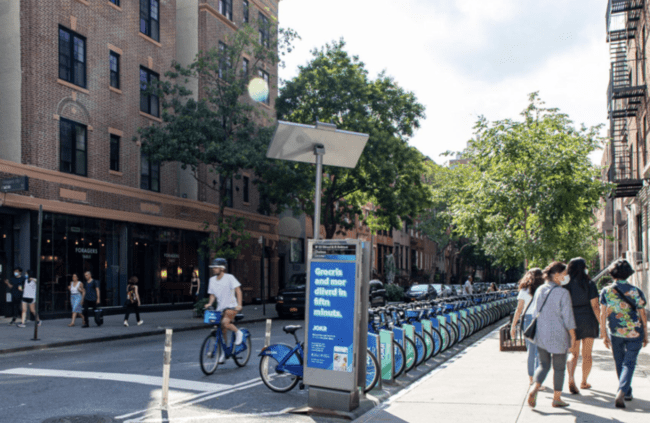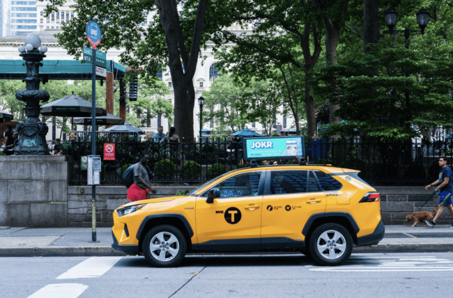 Adkom strategically located giant Manhattan wallscapes for large impactful messaging. Citi Bike Kiosks were utilized every couple of blocks to dominate important blocks. Lyft Taxi-Top video boards were geofenced to neighborhoods they service. This spectacular combination of media helped make JOKR ubiquitous in its market area and is helping drive a successful product launch. This strategy gives them 100% share of voice with no wasted impressions.