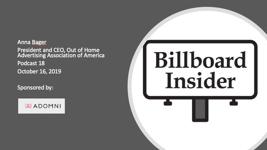 Today’s podcast guest is Anna Bager, President and CEO of the Out of Home Advertising Association of America. Anna talks about growing up with billboards, why out of home is a hot medium, why she joined the OAAA, where out of home is doing a good job and where it needs to improve.