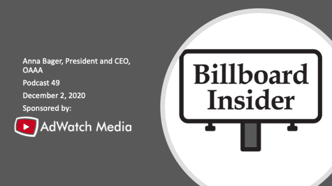 Today’s podcast guest Anna Bager reflects on an eventful first year as President and CEO of the OAAA. Anna says the the US out of home industry is coping well with covid and she identifies out of home trends to follow.