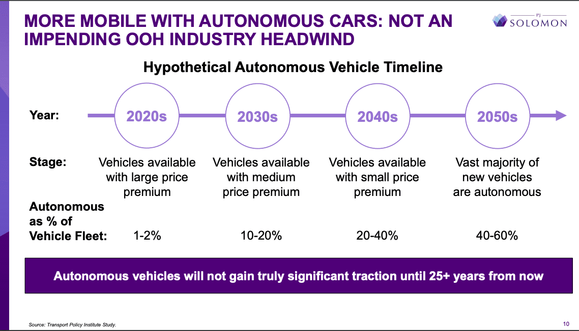 Insider agrees with Lamar CEO Sean Reilly’s comments that out of home will sell advertising in an autonomous car world just like it sells advertising today in transit settings today.