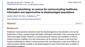 “Billboard advertising appears to be well suited to engage the less fortunate, providing productive pathway for the conveyance of helpful, supportive details, yielding healthier populations, enhanced opportunities and better communities.” That’s the conclusion of a 2017 white paper by the James K Elrod, CEO at Willis-Knighton Health systems and John L. Fortenberry, professor at Louisiana State University. Willis-Knighton Health systems has used billboards since the 1970’s and currently rents 28 billboards in Shreveport, Louisiana.