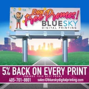 One of our greatest programs that Blue Sky offers is Promo Bucks. This program allows for our Outdoor customers to earn 5% back on everything they print with us to go towards their own promos. This program was initially to inspire and encourage loyalty. Being someone’s print vendor means being their partner. Promo Bucks is just one way for us to partner with our customers. We print them a free promo with their promo bucks and the power of the promo sells that billboard location for them. Once sold, they print the client with us which then gives them return back into their promo bucks and so on.