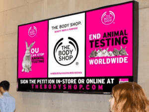 NEW YORK, NY — March 19, 2018 — The Body Shop today unveiled its first out-of-home (OOH) campaign in the U.S. leveraging high-traffic outdoor advertising spaces to call upon the public to help ban animal testing in cosmetics.