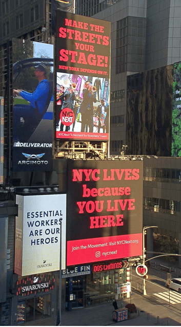 To see these beloved artists and institutions showcased on digital billboards in Times Square alongside some of the world’s biggest brands is a true testament to the fact that our city is at its best when we lift up, support, and show up for one another.