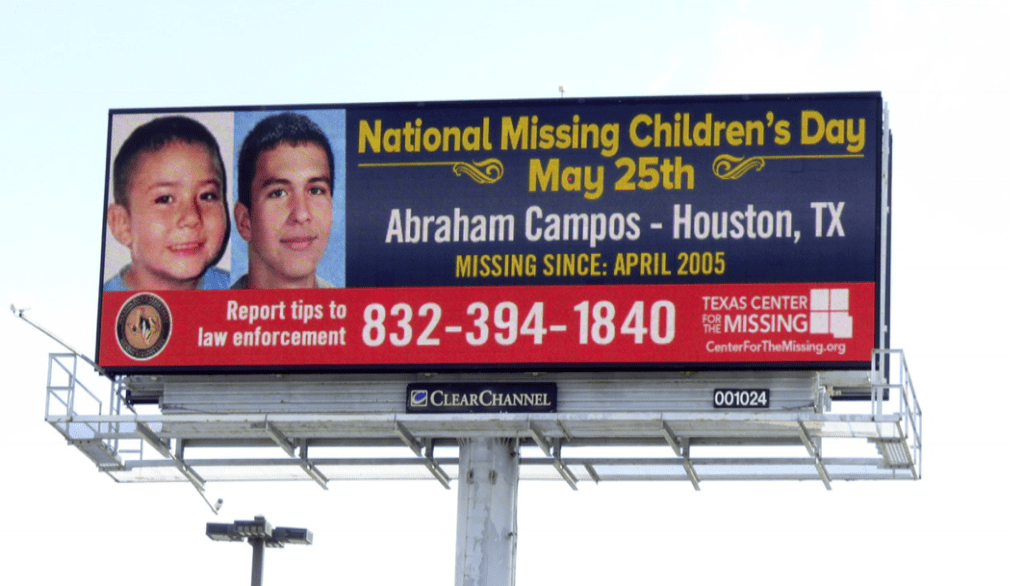 Timed to begin with National Missing Children’s Day, May 25, and running through June, CCOA will display images of missing children from San Antonio, Dallas, El Paso, and Houston on the company’s digital billboards across Texas. Radio public service announcements will also be aired on iHeart Media radio stations throughout Texas highlighting the different missing children cases for Houston, San Antonio, Dallas, and El Paso.