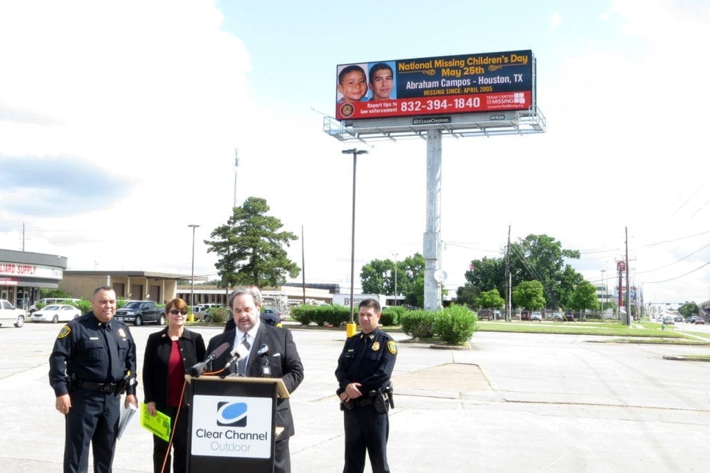 Texas Center for the Missing (TCM) and Clear Channel Outdoor Americas (CCOA) (NYSE: CCO), subsidiary of iHeartMedia Inc., participated in press events throughout major Texas markets to launch a new digital billboard campaign calling attention to the ongoing searches for local missing children. Some families of missing children, along with local law enforcement working these unsolved cases, spoke at press events throughout the state today and urged the public to share any information they have regarding the disappearance or whereabouts of these children.