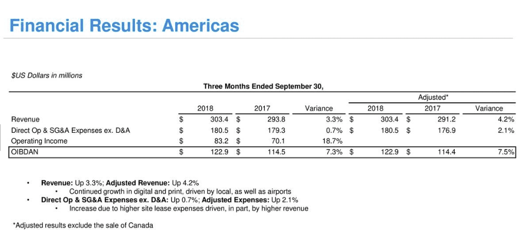 Clear Channel outperformed expectations for the third quarter of 2018. Here are the highlights of the 3Q 2018 earnings release, slide presentation and earnings call transcript.