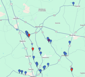 Admiral has structures on I-40 located between Exits 384 and Exit 373. The structures on I-40 are size 10’6” x 36’. In addition, they also own structures on highways around Duplin County including Hwy 41, Hwy 11, Hwy 50 and Hwy 903 with varying sign sizes from 8’ x 16’ up to 12’ x 24’.
