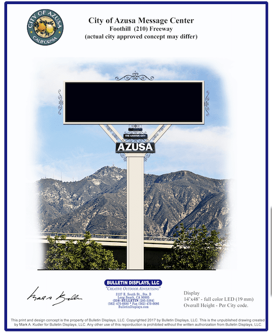 - City of Azusa (210 Fwy). You can see the design of the Azusa Message Center below.