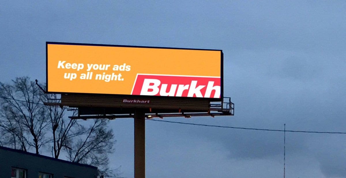 If you’re driving through a small town in Indiana chances are you’ll see a good looking Burkhart steel monopole bracketing each end of town and another Burkhart monopole strategically placed in the middle of town. Burkhart was started by Charles B Burkhart in 1964 when he placed “I believe in South Bend” signs up around the struggling community.Today Burkhart operates a poster, bulletin and transit advertising plant with 3,500 billboard structures across 38 counties in Indiana. Burkhart is privately held and run by third generation Burkhart family descendants. Charles Miller is CEO. Sara Miller is CIO. Rob Miller is VP Operations.