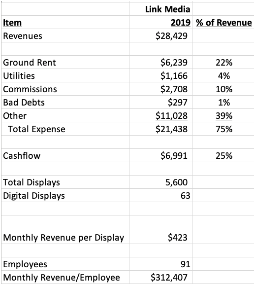 Here are Link Media’s  2019 financial results (numbers below are in thousands).