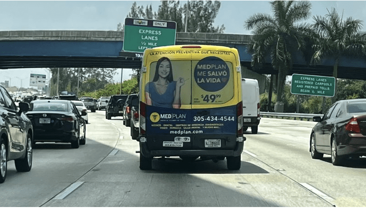The Special Transportation Service fleet is where Magnum gets its scale. Over 500 vans and sedans make more than 7,000 trips daily — nearly 50,000 per week — across Miami-Dade, parts of Broward, and Monroe County through the Middle Keys. The para-transit fleet is the largest in Miami-Dade County and among the largest in the nation, serving over 40,000 individuals with door-to-door non-emergency transportation. The fleet covers over 15 million miles per year, reaching neighborhoods that public transit often doesn’t. Ad products include full back wraps, sedan rear window wraps, and bus back wraps.