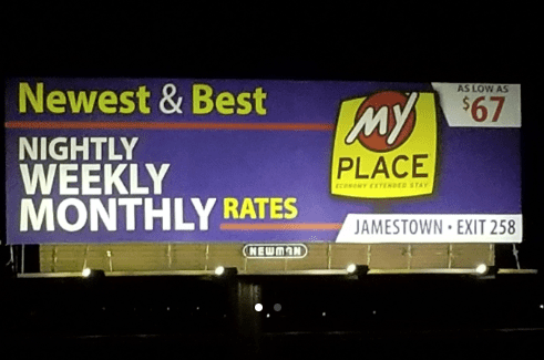 Newmans signs was founded by Harold Newman in 1956 to pay for college tuition. The company operates sign business along with a bulletin, digital billboard and poster plant in North Dakota. The company’s main office is in Jamestown, with divisions in Bismark, Fargo, Grand Forks and Minot. Harold Newman died in 2014. Kari Newman Ness is the company’s CEO. In November 2019 the company incorporated an 18′ extension into a billboard ad promoting the North Dakota State Mens basketball team.