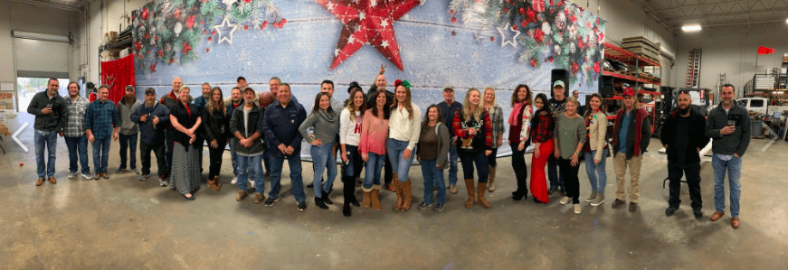 Wes Gilbreath Jr. has run the company since 1985. Here’s a christmas picture of company employees.