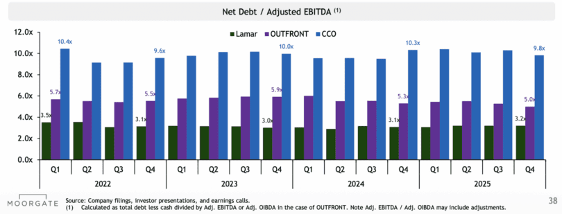 Moorgate Capital Partners produces an outstanding quarterly report on the out of home advertising industry. Here are some charts from Moorgate’s 4Q 2025 report which caught our eye.