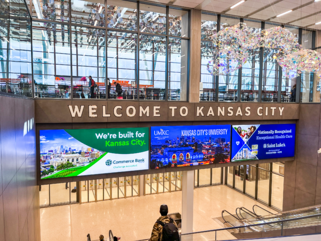 The new program includes over 80 displays, which feature a carefully curated combination of digital and static advertisements. Departure Media has also designed elements beyond advertising, including the ‘Welcome to Kansas City’ signage located on the bulkhead soffit seen by passengers on their descent to the lower level.\
