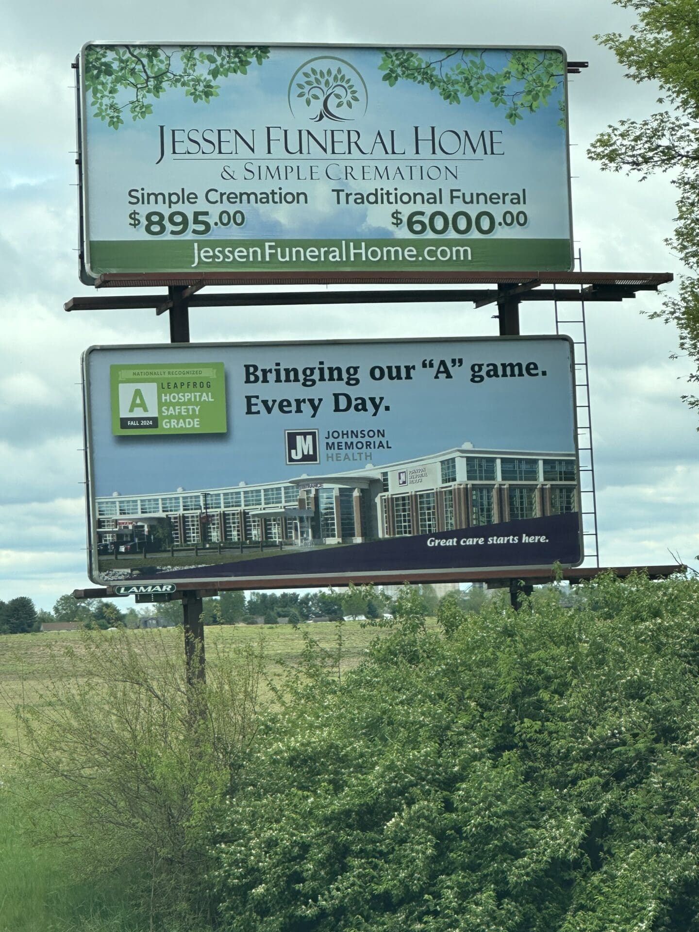 We’ve got a couple of odd ball pairings that have been seen in our area. We just couldn’t talk the funeral home and day care center out of advertising together. They wouldn’t take no for an answer!
