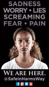 “This campaign negates the isolation which abusers implement as a standard form of control. What someone sees as they drive throughout our country, as a source of assistance, can no longer be controlled,” said Caroline Hammond, Founder of Safe in Harm’s Way.