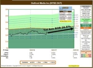 Now that the MTA deal is finalized, there is more clarity as it relates to OUT’s earnings stream – the forward runway (2018 AFFO/share forecast) is 13% suggesting that a dividend increase of around 5% is likely.