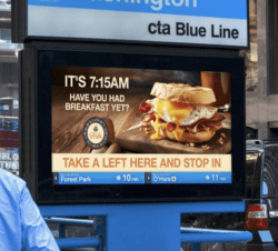 My husband and I were recently in Las Vegas on vacation and were looking for a specific store— we always go to the same store, but wanted to try something new. We ventured out to a new store, but it was uninviting and not what we were looking for. As we were leaving, I looked up and saw an out-of-home ad advertising a “new store on this street,” and that we should make a right, so I said “let’s do it.” The next OOH sign said to make a left! This is such a great example of a super simple but clever way OOH can be used— you know where your consumers are, and where you want them to go. It was one of those moments where I thought, “this is how it actually works right. That’s how you should think about OOH.” Don’t just slap your ad up. Think about what that consumer is looking for when they’re in that moment.