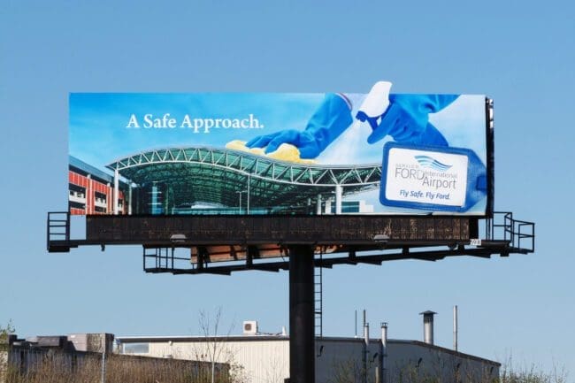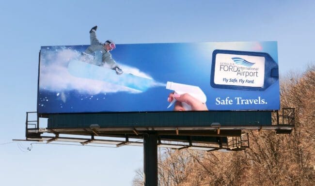 GRAND RAPIDS, MICH — The new advertising campaign for Gerald R. Ford International Airport (GFIA) encourages safe travels this season in West Michigan. The 2021 “Fly Safe. Fly Ford.” initiative, and marketing efforts were developed by advertising and design agency, Extra Credit Projects (ECP).
