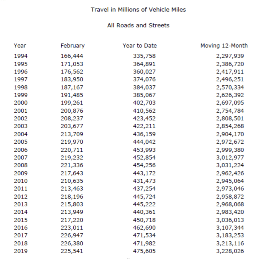 (4) More vehicle miles are traveled, according to Federal Highway Administration (FHWA).
