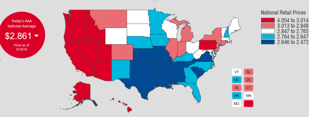 “Since last Wednesday (May 8),” says AAA, “the national average for unleaded regular gasoline has fallen two cents to $2.86. However, with summer on the horizon, pump prices will likely rebound during the run-up to Memorial Day.”
