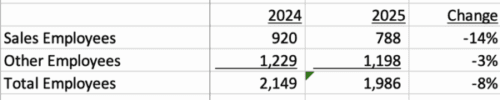 OUTFRONT’S headcount declined by 8% from 2,149 employees in 2024 to 1,986 employees in 2025.
