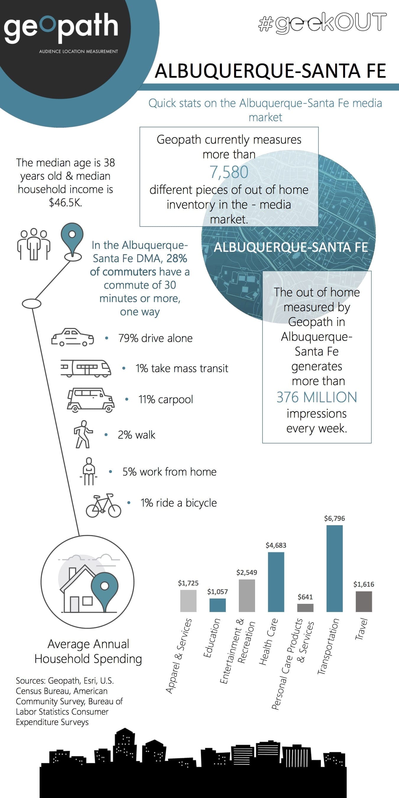 This week’s Geopath Market Spotlight focuses on the Albuquerque-Sante Fe DMA. Infographics for the top DMAs and much more are available to Geopath members in their geekOUT Library. For more information on how to become a Geopath member, you can visit: http://geopath.org/membership/.