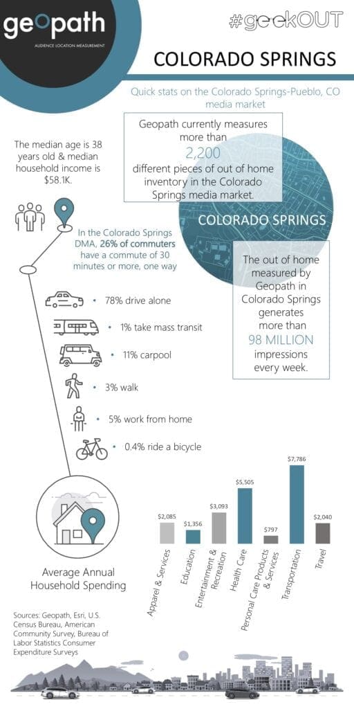 This week’s Geopath Market Spotlight focuses on the Colorado Springs, Colorado DMA. Infographics for the top DMAs and much more are available to Geopath members in their geekOUT library.