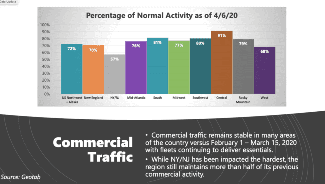 Yesterday Geopath issued an update on the impact of coronavirus and out of home. The report shows that commercial traffic (think truck and delivery fleets) remains between 60-90% of normal across the country. Point this out to your truckstop and trucking company advertisers.