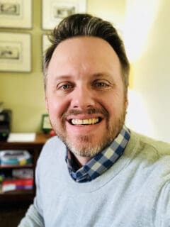 Neil Bell, New South Outdoor, practicing good social distancing technique while home officing.