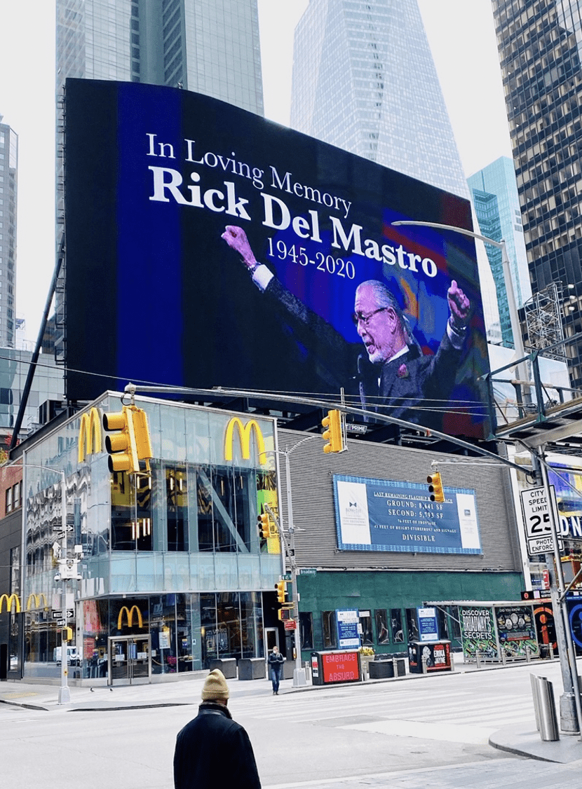 - COVID-19 claimed Rick Del Mastro (April 15). He was a pioneer in transit advertising, Times Square displays, and street-level formats. Del Mastro was inducted into the OAAA Hall of Fame in 2019. https://billboardinsider.com/rick-del-mastro-rip/
